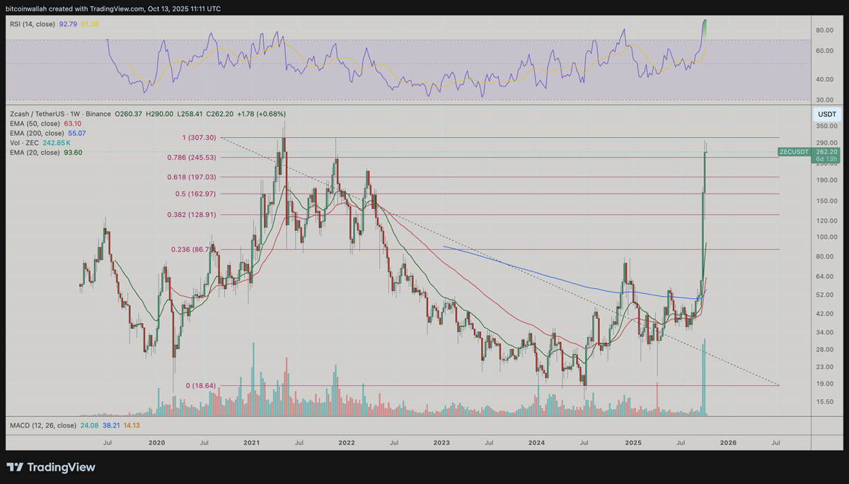 ZEC/USDT周线价格图。来源:TradingView