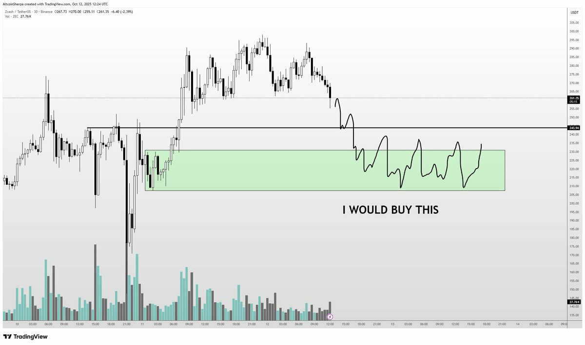ZEC跌破244美元门槛可能引发一连串的强制多头清算,加深回调,然后才可能反弹。