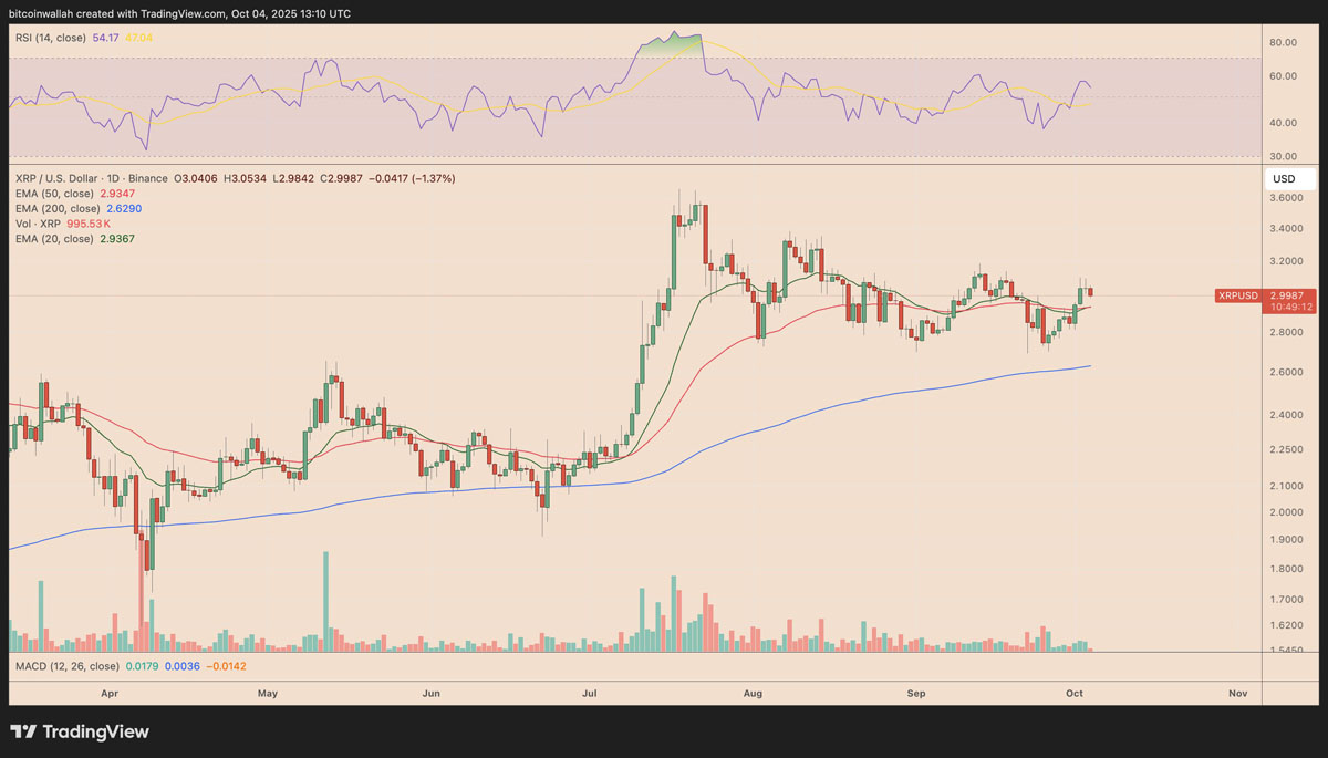 如果XRP从20日EMA(2.93美元)或50日EMA(2.52美元)反弹,可能会使看跌预期失效,并推动价格再次回升至3美元附近。