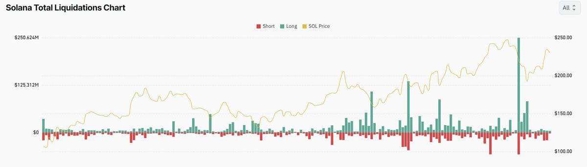 Solana总爆仓图表。来源:CoinGlass