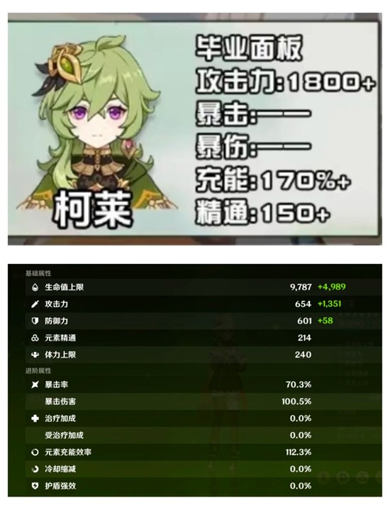 原神角色柯莱怎么培养-角色柯莱毕业面板参考