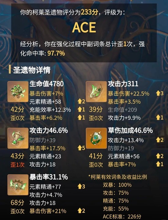 五个主词条顺序是生命-攻击-攻击-草元素伤害-暴击率。