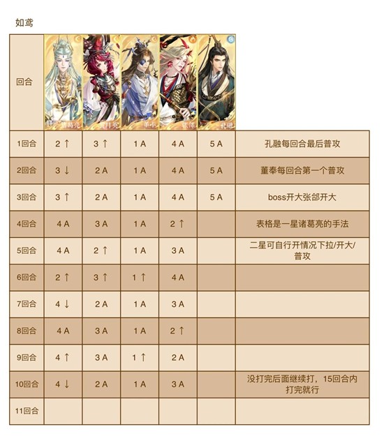 表格中是一星诸葛亮的手法,二星诸葛亮回龙气不规律,可以自行改变手法,选择诸葛亮普攻/下拉/开大。