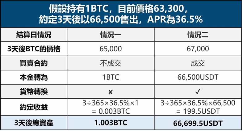 当结算价>目标价时:保留原币种并获得BTC计价的收益