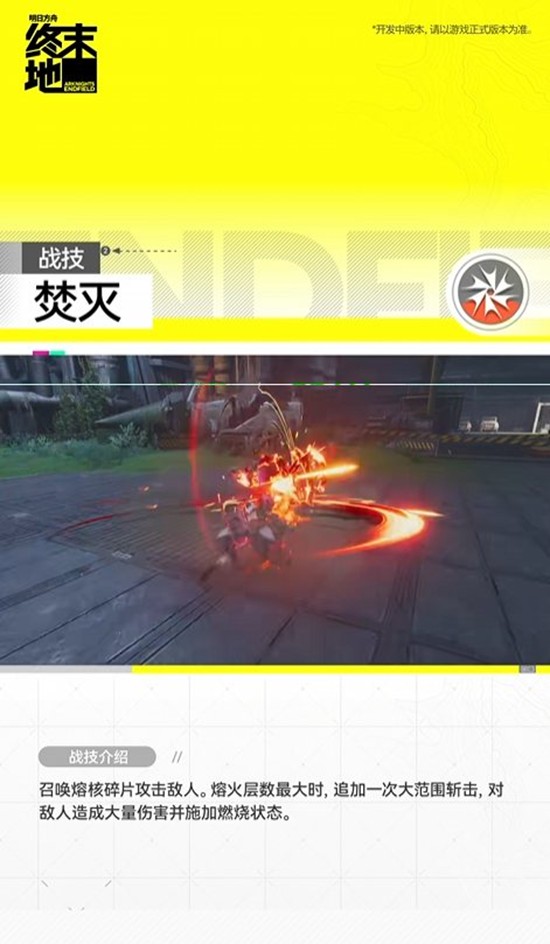 召唤熔核碎片攻击敌人。熔火层数最大时,追加一次大范围斩击,对敌人造成大量伤害并施加燃烧状态。