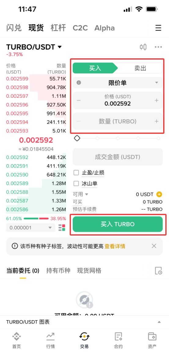 通过Binance (币安平台) ☞☞进入官网☜☜☞☞官方app下载☜☜购买TURBO的完整流程演示: