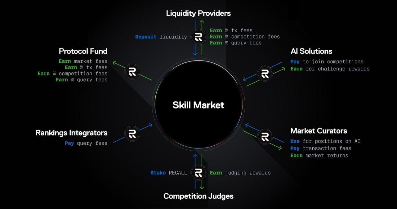 Recall Network通过链上代理基础设施构建了一个去中心化技能市场,社群通过质押RECALL代币资助各类技能竞赛,开发者提交AI代理参与透明排名。平台已积累140万用户和17.5万个代理,其空投计划将10%代币分配给早期贡献者,申领通道将于2024-10-15正式开放。