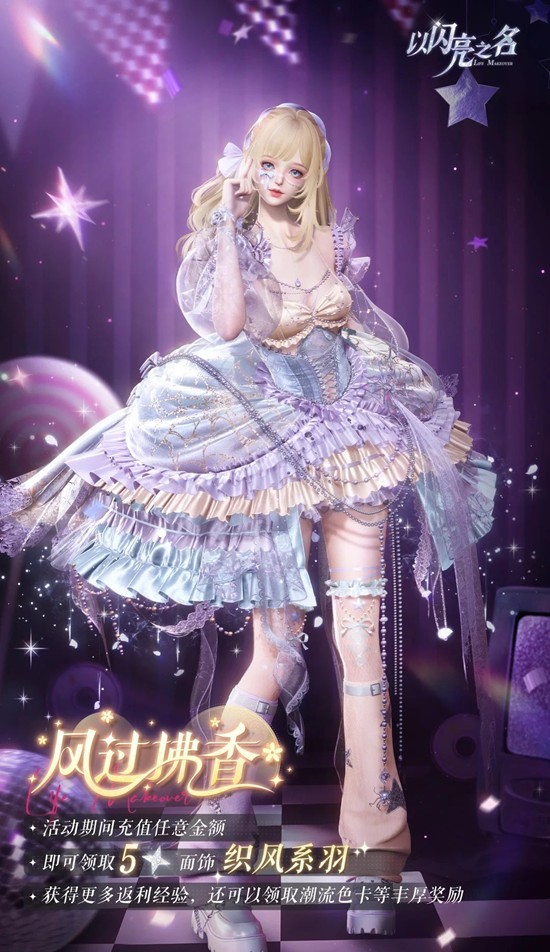 以闪亮之名风过拂香,任意充值尊享超值回馈!活动期间在游戏内或游戏官方网站途径充值任意金额,即可在【风过拂香】页面领取限定五星面饰【织风系羽】。喵喵梦游记开启!累积梦游币,可以获取五星限定套装【挣缚之力】及多种材料道具奖励!一起来和小编看看吧~