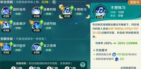 如果队伍中缺乏治疗或控制,可以考虑调整天赋加点策略,适当降低在纯输出技能上的投入。例如,可以只将音能潮汐技能点出1级,以获得稳定的支援效果,这样的性价比很高。另一个值得投入的技能是“不想练习”,该技能能在目标区域召唤魔法进行范围打击,造成268%的伤害,如果点出爆炸伤害天赋,还能附加1秒的眩晕效果,为团队提供宝贵的控制机会。