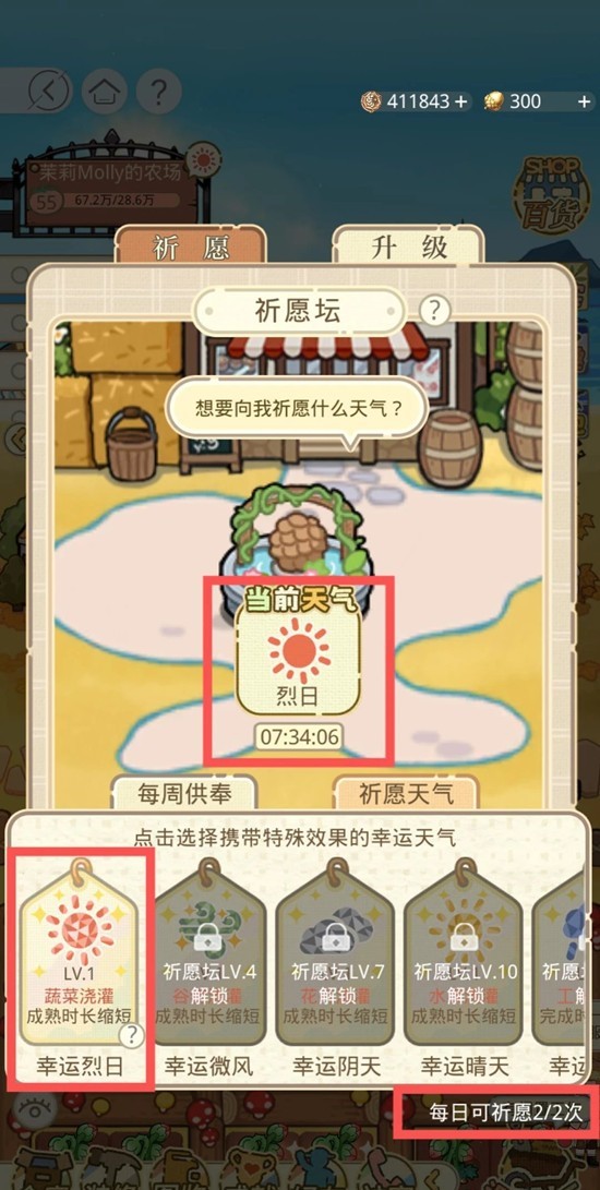 ②升级可解锁更多幸运天气,还可以提升幸运天气效果