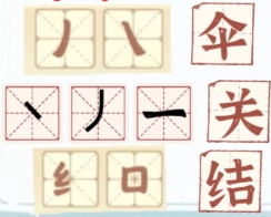 桃源深处有人家组笔成字有6套题目,每一套题目下分别有3个可以合出的字。卷1的字分别是贝、平、时;卷2的字分别是字、困、侧;卷3的字分别是若、罗、步;卷4的字分别是甲、哲、急;卷5的字分别是伞、关、结;卷6的字分别是房、思、目。