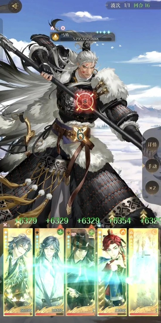 3.BOSS开大后一回合先算好攻击次数和行动顺序,张邈普攻两段伤害、大招一段、助剑一段,孙权普攻三段大招一段反击一段(需赌)。因BOSS普攻叠层有随机性,无脑跟表可行性不高。