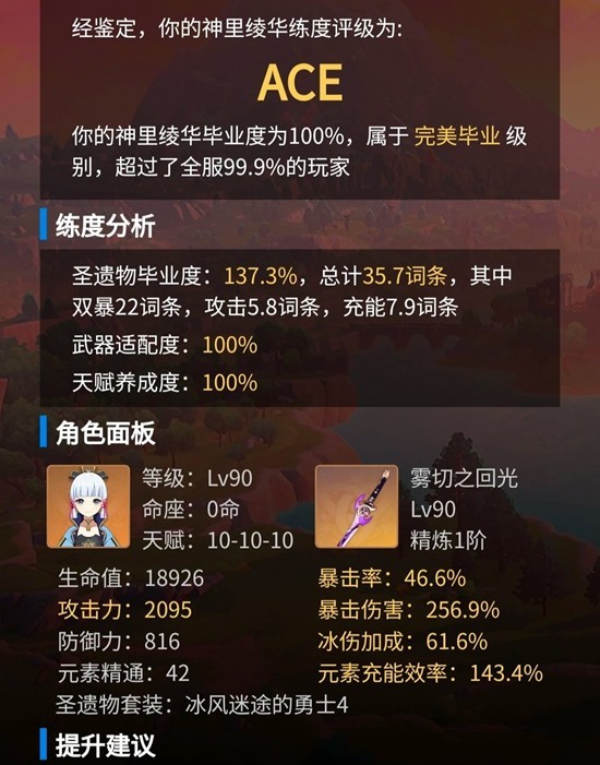 建议:要想绫华的伤害高,优先选择暴击伤害,绫华的特性触发冻结提高暴击率,所以不用太强求暴击率。其次就是攻击力,但是元素充能不能一点都没有,大招比较吃元素充能。