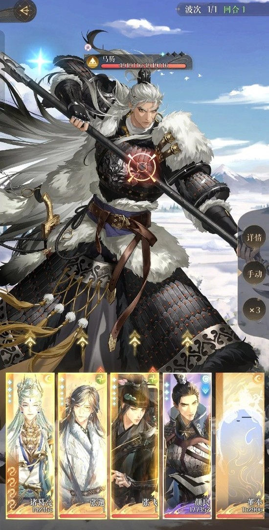 3.后面回合重复表格即可,张飞叠攻击星石,第四回合记得颜良大,boss大招后张飞要下拉