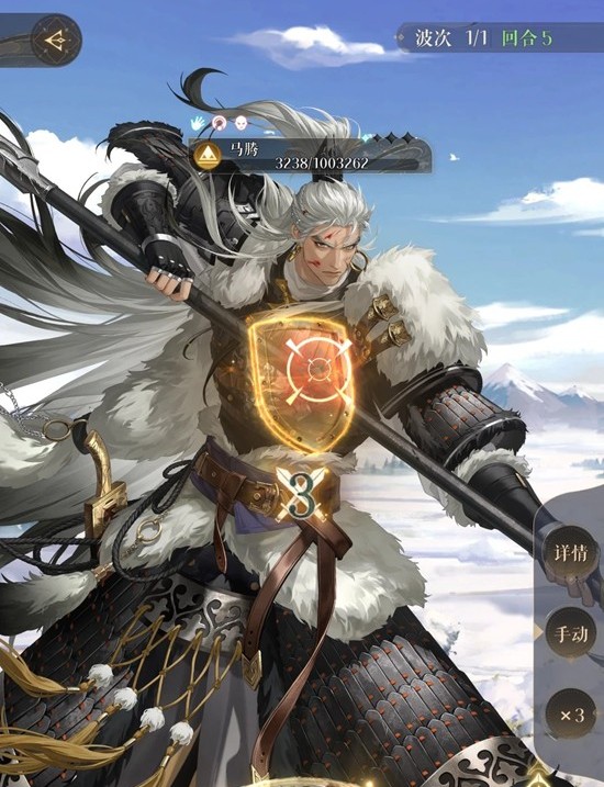 注意马腾身上会有数字,大招回合结束的下一回合(此时马腾身上有一个黄色的盾牌),根据攻击次数可以消除(其他回合不可消除)