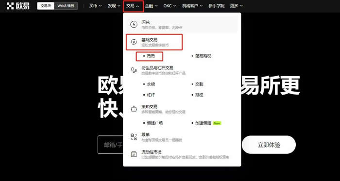 4.登录后返回首页,依次点击交易-基础交易-币币交易进入操作页面