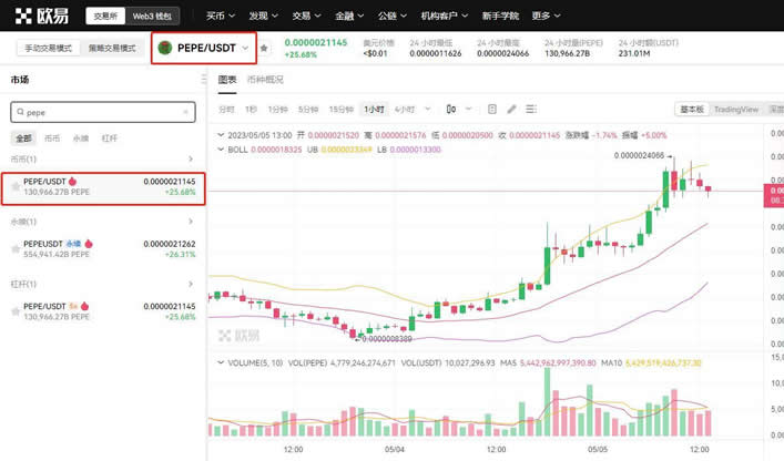 目前PEPE已在18家交易所上线,以下为欧易OKX平台的详细购买步骤:
