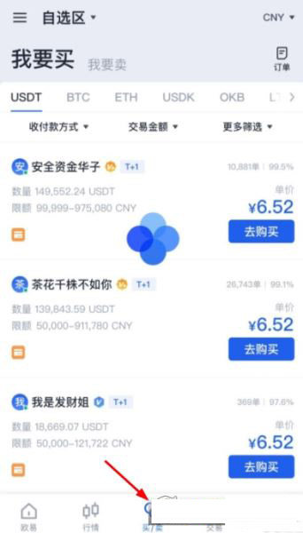 打开APP底部"买/卖"功能,完成发比与USDT的兑换操作
