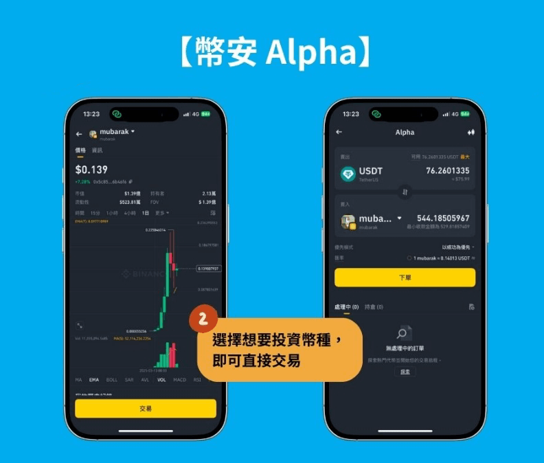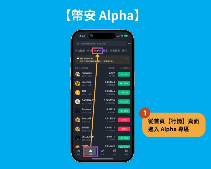 1.进入币安APP【行情】→【Alpha】→选择交易币种