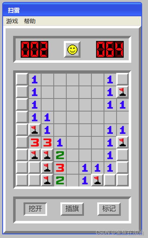 2. 难度选择:点击「初级」「中级」「高级」或「自定义」按钮,调整网格大小、地雷数量等参数