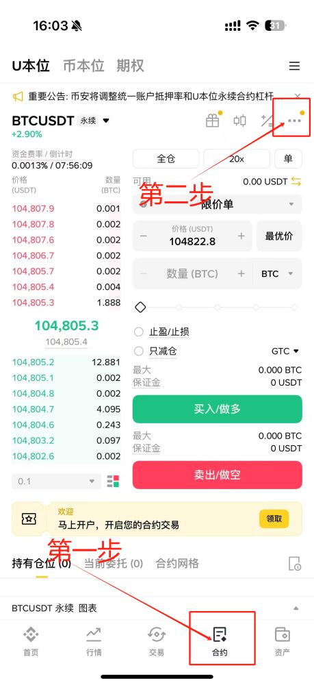 3. 未开通合约账户的用户需先完成账户开通