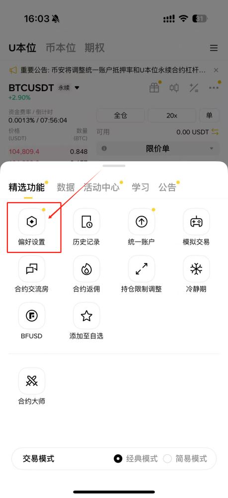 币安平台默认开启双向持仓功能,如需调整请按以下流程操作: