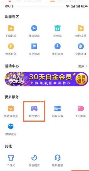 5、也可通过迅雷客户端进入"我的游戏中心"板块;