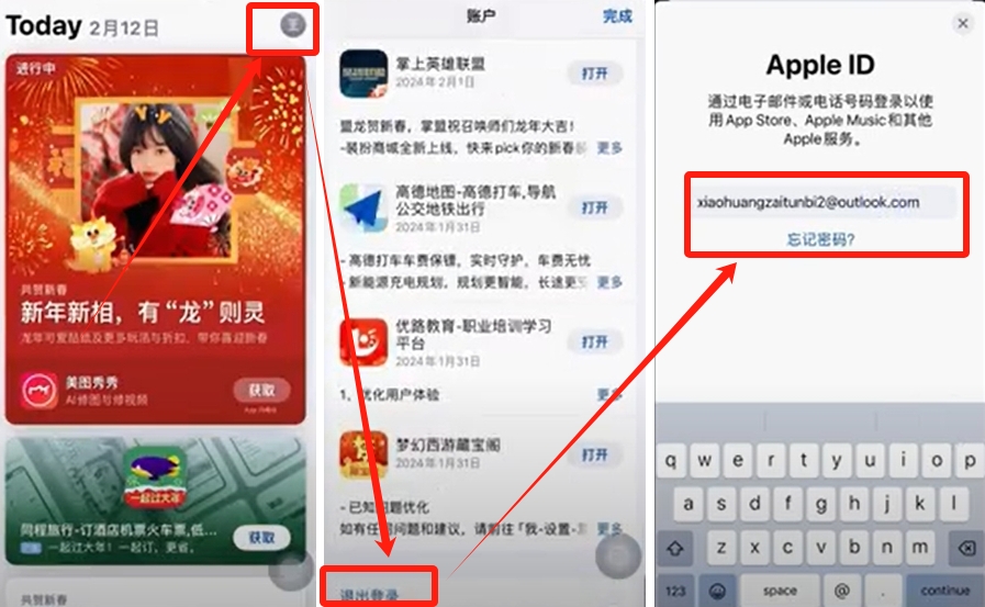 我们打开苹果手机的apple store,点击右上角的小人标识,下滑到最下面,点击【退出登录】,然后登录我们的外区ID。