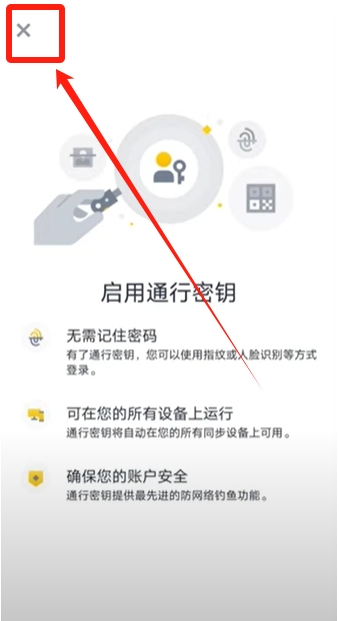 注册好之后这里会出现一个启用通行密钥的选项,这个通行秘钥有点类似于调用手机的指纹和面部识别这样的功能。开了之后会用的方便一点,不开其实也没有什么区别。我这里先点击上方的叉号关掉。