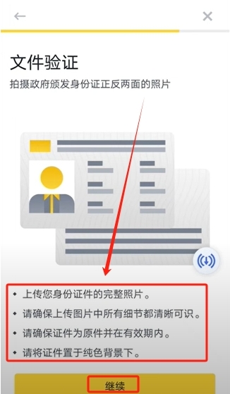 他会让你拍摄身份件的正反面照片,点击【继续】。
