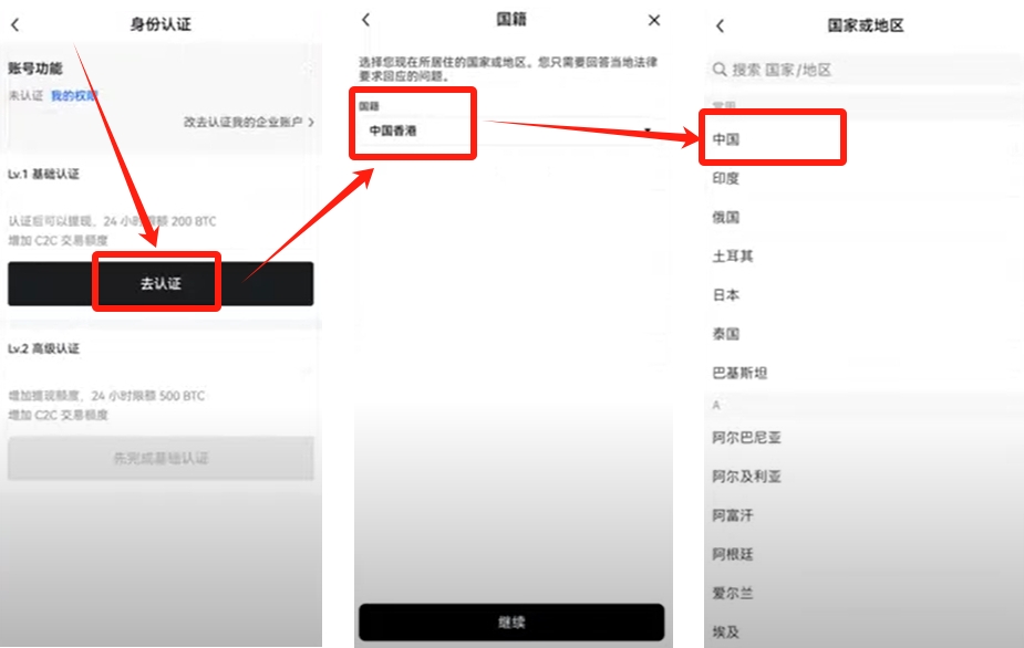 4.先进行L1基础认证。点击“去认证”,国籍选择“中国”或者你实际的国籍。