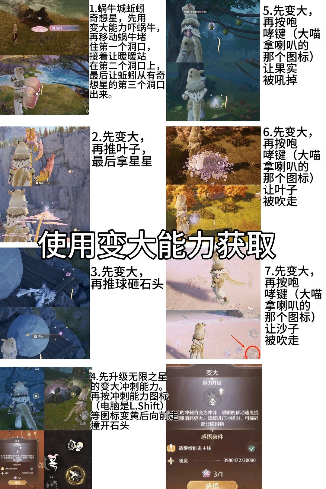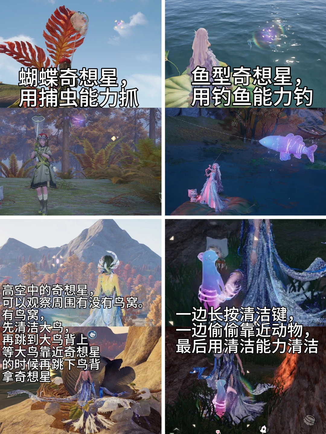 无限暖暖2.0版本新增了一些新的获取的奇想星,有使用弓箭能力瞄准射击获取的,也有使用变大能力获取的,还有使用黏黏爪或漂浮能力获取等等。下文列举了详细具体的2.0版本中各类型奇想星的获取方法。