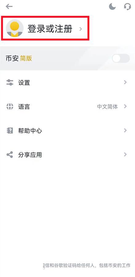 1、访问币安官网或下载官方APP,点击界面左上角的【登录/注册】按钮,已有账号可直接登录。
