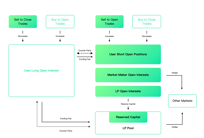 1. 流动性池(LP)作为被动交易对手方,通过持有抵押品维持市场平衡