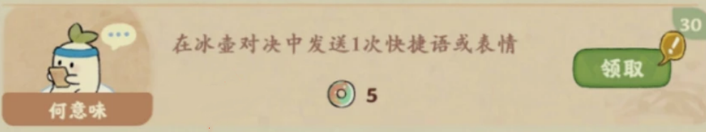 在冰壶对决中发送1次快捷语或表情