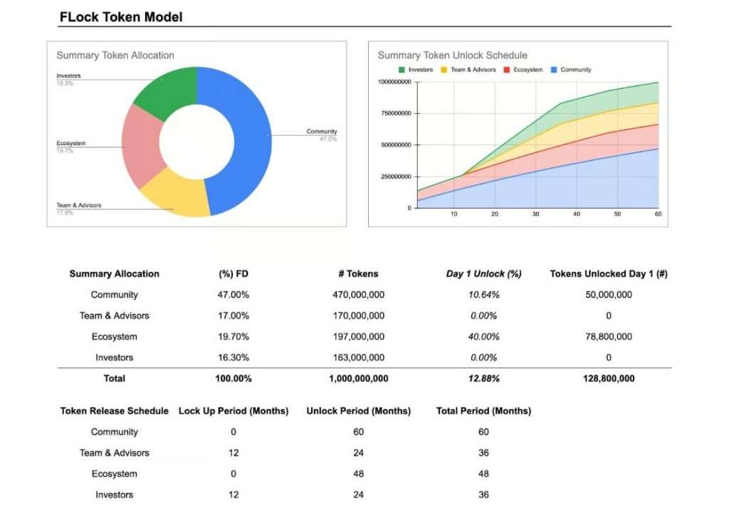 总量10亿枚的FLOCK代币分配合理:社区占47%,生态建设19.7%,团队顾问17%,投资者16.3%。平台特别预留5%用于空投奖励早期贡献者。