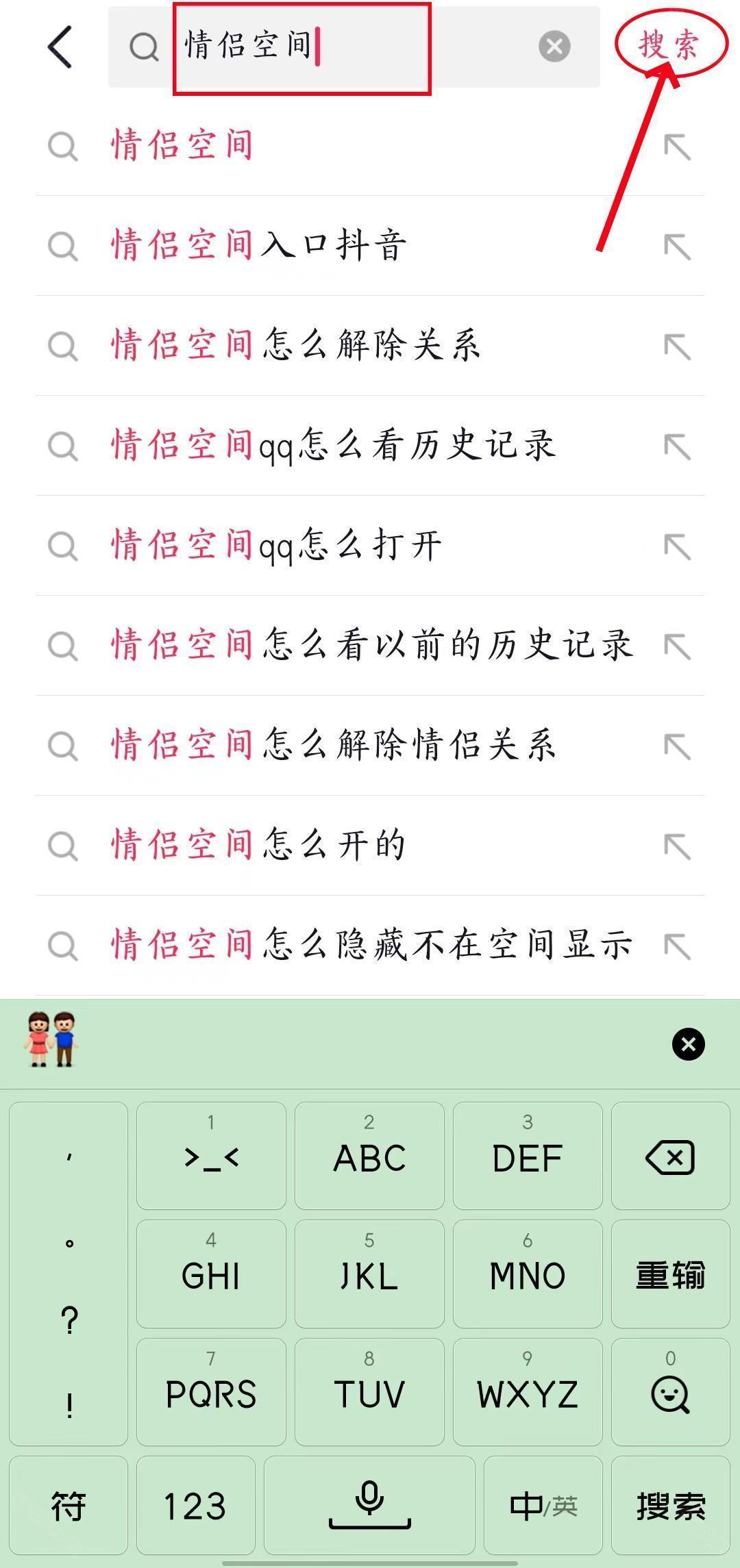 2、可以在搜索栏中输入情侣空间,点击【搜索】进行查找。