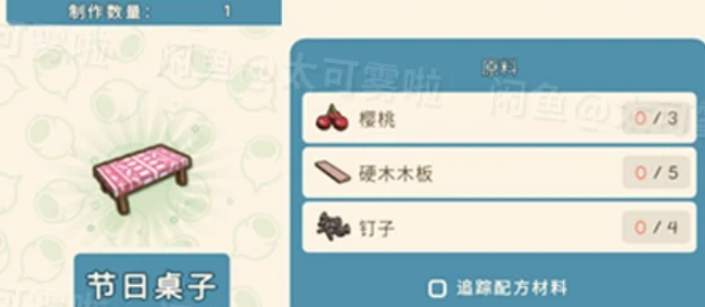 樱桃*5、布料*2、红树木棒*8、棕榈原木*2