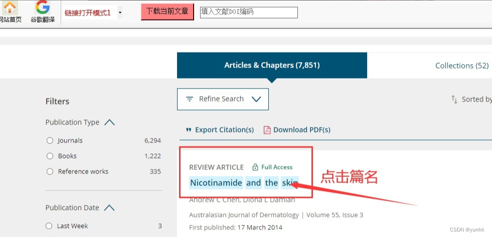 以"Nicotinamide and the skin"为例,当遇到收费文献时: