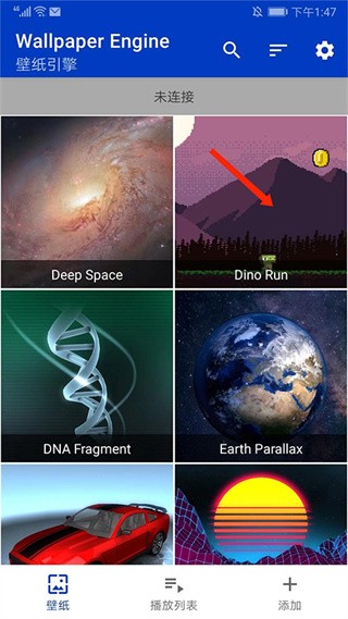 1. 启动软件后滑动浏览壁纸,点击选中心仪素材