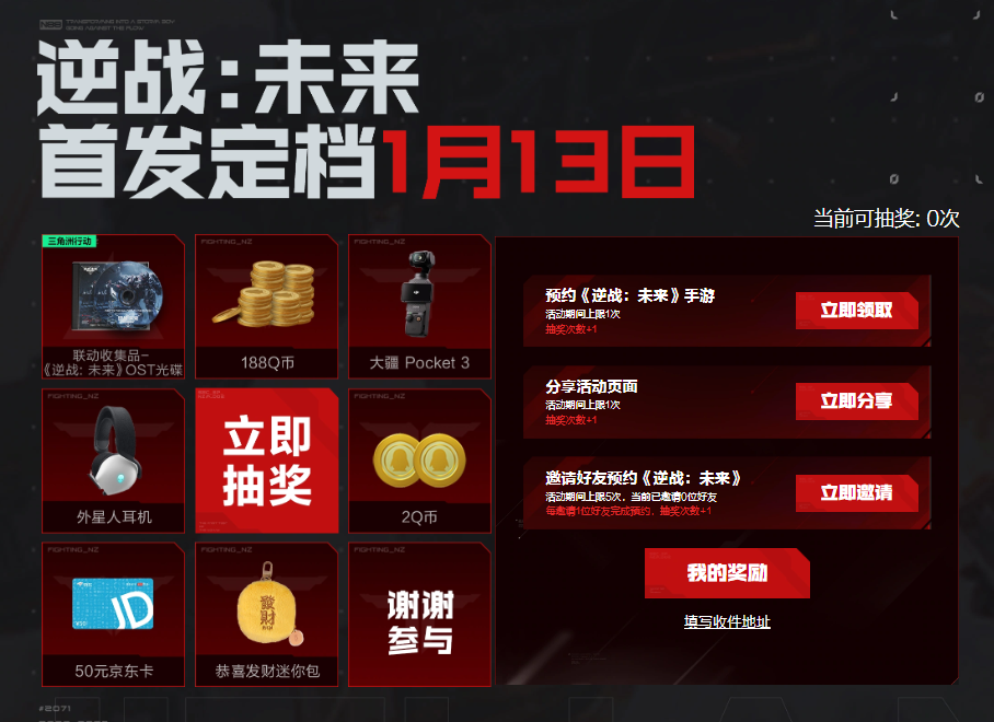邀请好友预约《逆战:未来》:活边期间上限5次,每邀请1个抽奖次数+1