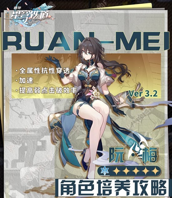 崩坏:星穹铁道游戏中,玩家将登上星穹列车,造访寓居宇宙的万象世界,携手形形色色的旅伴,解救“星核”引发的种种危机,对抗“星神”践踏文明的意图,除主角开拓者外,玩家还可以在战斗中操作其他角色,并可在“智库”中查看角色的语音、故事等。那么游戏中角色阮梅应该怎么培养呢?为你准备了一份攻略,一起来看看吧~