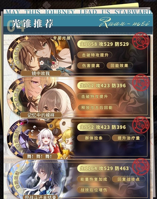 以上就是崩坏:星穹铁道阮梅角色培养攻略,阮梅配队遗器养成推荐的全部内容了,更多游戏资讯,攻略内容敬请关注,您的支持是我们努力的动力!