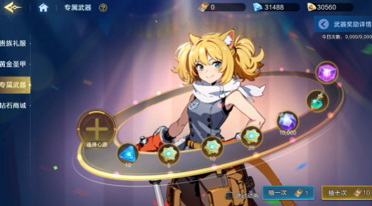 专武分为金色与红色两类,每种职业共配置4把专属武器。前三把为金色专武,激活后单把可提升约700点战斗力;第四把为红色专武,激活后额外提供1600点战斗力加成,且其属性效果支持多层叠加。获取方式存在差异:金色专武通过商城专属武器池抽取,单抽消耗50颗蓝色钻石,综合出率1.8%,并设有60抽保底机制;奖池内除专武外,还包含升级所需零件。