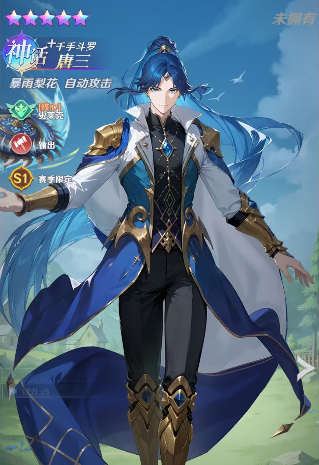 位列榜首的是唐三。其核心机制围绕“暴雨梨花针”展开:在专属被动加持下,该大招持续时间达16秒,并存在概率额外召唤第二组,形成双线高频范围压制。暴击率提升效果直接强化单次命中伤害,其余被动还提供全队伤害加成,使其成为兼具爆发密度与团队赋能能力的首选主C。
