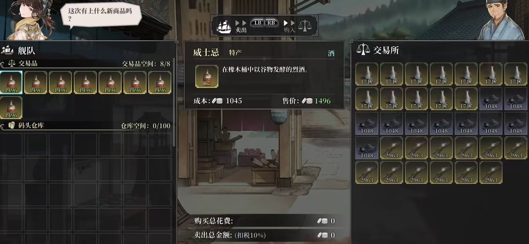 交易所界面支持动态切换显示模式:可查看当前商品的溢价率(正负百分比)、本地收购价与卖出基准价。各港口因资源禀赋不同,不仅收购价格存在明显差异,所售特产亦各具唯一性。确认交易后,系统将弹出明细结算面板——其中“买入花费”仅计算当次采购本金;“卖出收入”则为含利润总额,实际利润由购入成本与售出价格之差决定。每次成功交易均可获得经验与城市贡献值。需特别注意:所有出售行为均按成交额征收固定比例税金;当玩家在该港口的影响力达到指定阈值后,可向官府提交免税申请。大额单笔交易的税费较高,建议尽早完成影响力积累并完成申请流程。