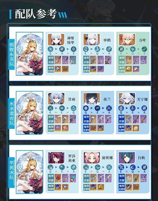平民冰队:爱可菲+罗莎莉亚+迪奥娜+行秋