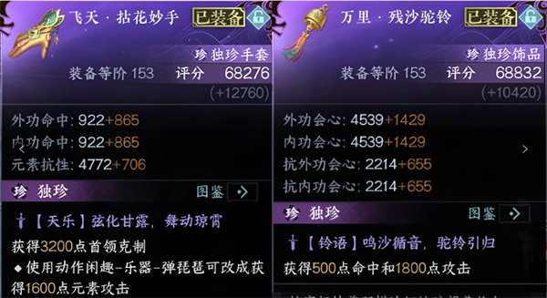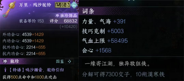 2、【万里·残沙驼铃】:独珍效果固定提高500点命中+1800点攻击力。