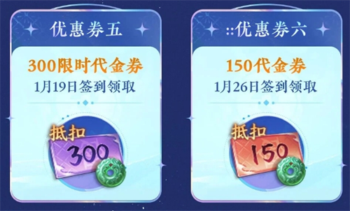逆水寒3.2.3跨年版中玩家通过签到、活动任务等可以领取到不少的优惠卷和代金卷,玩家可以通过这些优惠卷在商城中购买各种时装、道具,有的还可以叠加使用,以下是具体的优惠卷获取分享。