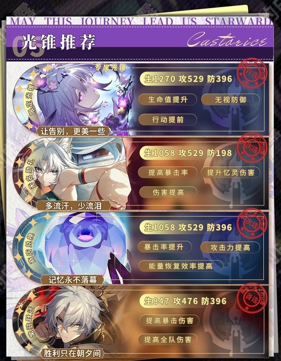 推荐升级:若依赖召唤物输出,优先升级与召唤物伤害、行动频率相关的行迹。增加召唤物生命值或防御力,避免因死亡导致输出中断。加点需围绕其核心机制(召唤物、低速高暴)展开。